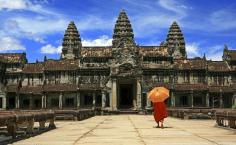 A monk visits the ruins of Angkor Wat in Cambodia.