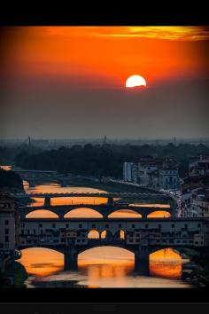 Beautiful Florence, view of The Ponte Vecchio on river Arno.