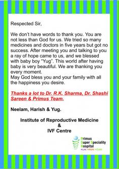 #Brigadier (Retd) Dr. R.K Sharma, Director & HOD, Institute of Reproductive Medicine & IVF Centre, Primus Super Speciality