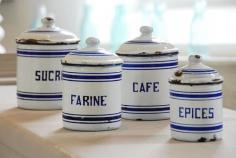 Vintage French enamel kitchen canisters | Decorative Country Living ᘡղbᘠ