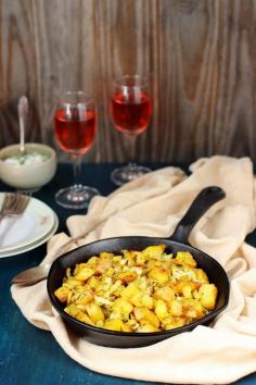 Tarragon Shallot Roasted Potatoes topped with Chèvre Cheese and Scallions | Cali-Zona ᘡղbᘠ