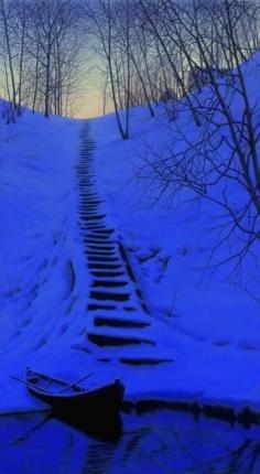 Snowy steps at Twilight ~ by Alexei Butirskiy