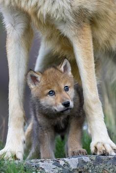 Gray wolf pup under mother's loving care • photo: Klein-Hubert on KimballStock