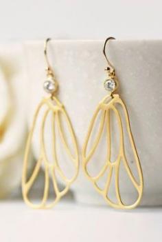 Gold Angel Wing Earrings Matte Gold Dangle Wing