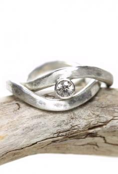 Silver Gray Zircon Wave Wedding Ring Set Beach Wind