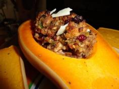 Butternut Squash with Stuffing combines #GottoBeNC butternut squash, pecans and apple. #LocalDish