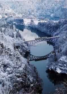 Snowd landscape in Fukushima, Japan.