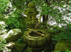 Japanese garden with water fountain