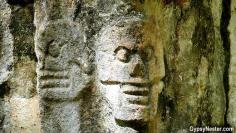 Skulls on the side of the skull platform in Chichen Itza in Mexico! See more: www.gypsynester.c... #mexico #mayan