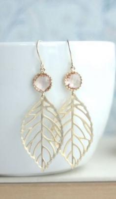 Peach Leaf Earrings. Light Peach, Champagne