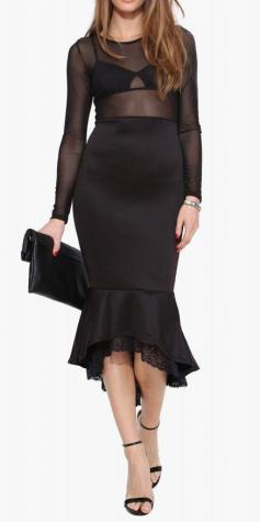 Mesh Mermaid Dress in Black