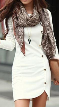 Enchanting Long Sleeve White Sheath Dress with Button