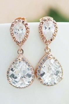LUX Rose Gold clear white cubic zirconia Crystal tear drop Wedding Earrings