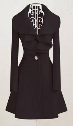 Elegant Black Long Sleeve Woolen Coats with Turndown Collar