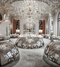 Following a multi-million dollar revamp, the decor at Hotel Plaza Athénée has an almost futuristuc feel.