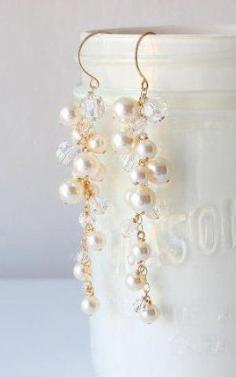 Pearl and Crystal Earrings Swarovski Bridal