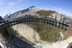 #Places to #visit: High above the Sunwapta Valley in the Canadian Rockies is a breathtaking view of glaciers and mountains made more accessible with ‘The Glacier Skywalk,’ a 35 m (115 ft.) cantilevered glass-floored observation platform.