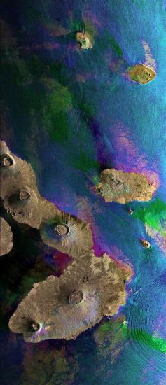 The Galapagos Islands, an archipelago situated some 1,000 km to the west of Ecuador in the Pacific Ocean. Satellite image.