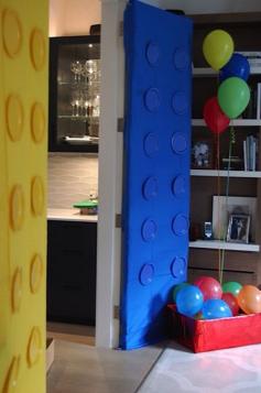 Turn your doors into giant Legos with disposable table cloths and matching paper plates.