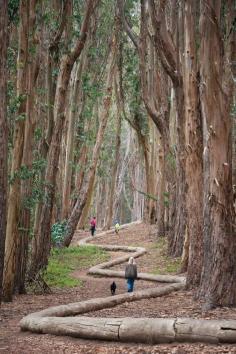Walking the “Lover’s Lane” trail and Wood Line in the Presidio National Park. San Francisco