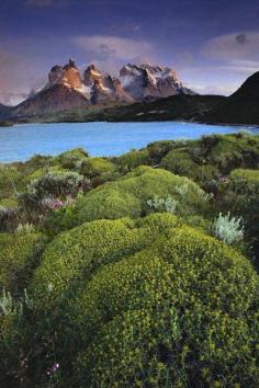 Cuernos del Paine at dawn from Lago Pehoe, Patagonia, Chile by Galen Rowell.