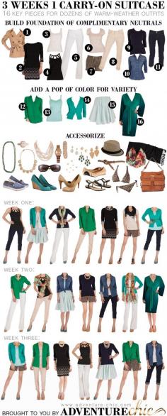3 Weeks 1 Carry-On Suitcase (Warm Weather Edition) This blog has so many beauty & fashion tips for fabulous travels