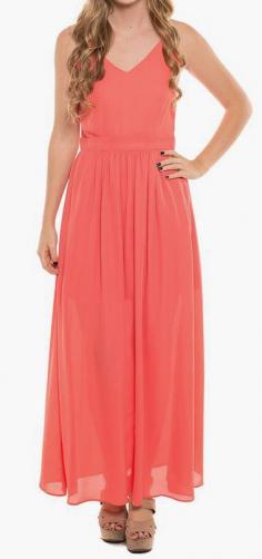Coveted Clothing Coral Lace-Back Maxi Dress