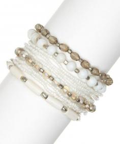 White & Smoke Beaded Stretch Bracelet Set