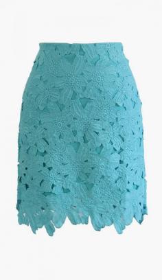 Full Flower Cut Crochet Skirt in Turqoise