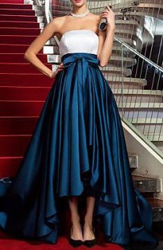 A-line Princess Strapless Asymmetrical Satin Evening Dress inspired by Marion Cotillard