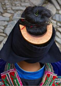 China | "Langde Miao woman's hair style, close up". Kaili, Guizhou | ©Keren Su