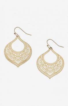 Matte Goldtone Filigree Cutout Teardrop Earrings