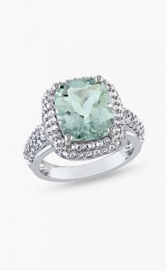 Green Amethyst & White Sapphire Cushion-Cut Ring