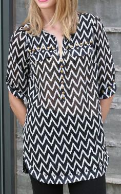 Angie Apparel Black & White Chevron Stud Top