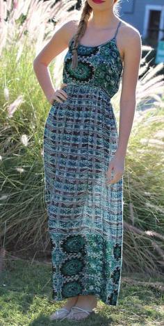 Angie Apparel Blue & Green Abstract Maxi Dress