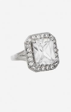 Sevil 925 Simulated Diamond & Sterling Silver Emerald-Cut Halo Ring