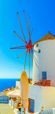 Amazing view to the Sea including a pictorial old traditional windmill in Oia the most beautiful village of Santorini island in Greece | 10 Breathtaking Photos of World's Most Romantic Island