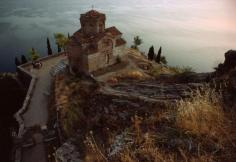 The small monastic church of St John at Kaneo sits perched atop a rocky precipice overlooking Lake Ohrid in Macedonia, Yugoslavia Photograph by James L. Stanfield