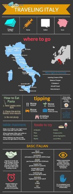 Italy Travel Cheat Sheet; Sign up at www.wandershare.com for high-res cheat sheet images.