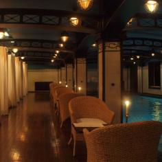 Swim away your stresses in the lap pool accented by woven arm chairs and candlelight.