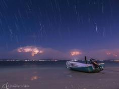 Watching the beautiful lighting display over the main land of Malaysia as the stars trail across the sky. #beach Discovered by Jan Venter at Kapas Island, Marang, Malaysia
