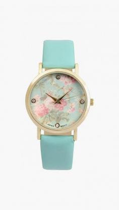 Journee Collection Mint Floral Faux Leather-Strap Watch
