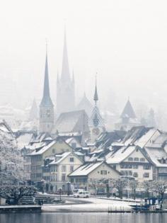 The Town of Zug on a Misty Winter Day, Zug, Switzerland, Europe Fotografická reprodukce
