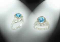 White Gold Ring with Diamonds & Blue Topaz, For someone special. DORANO JEWELRY UNIQUE DESIGN & EXCELLENT CUT