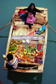 ღღ Floating Market in Cat Ba, Vietnam