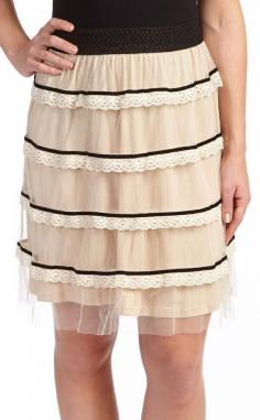 Young Essence Beige & Black Embroidered Tulle Skirt