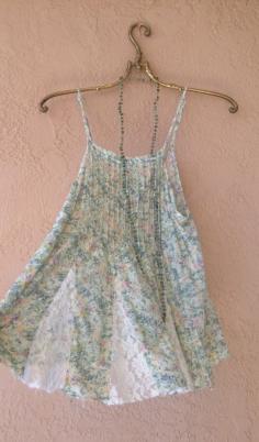 Free People Resort Romantic flowy mint floral with lace insets camisole