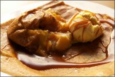 crêpe, caramel au beurre salé maison (with baked apple and vanilla ice cream) at West Country Girl. Delicious, friendly service. You should probably reserve.