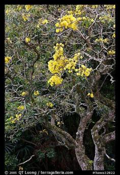 Tree with yellow blooms. Oahu island, Hawaii, USA