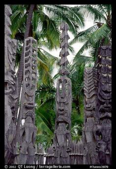 Polynesian idols, Puuhonua o Honauau National Historical Park. Big Island, Hawaii, USA